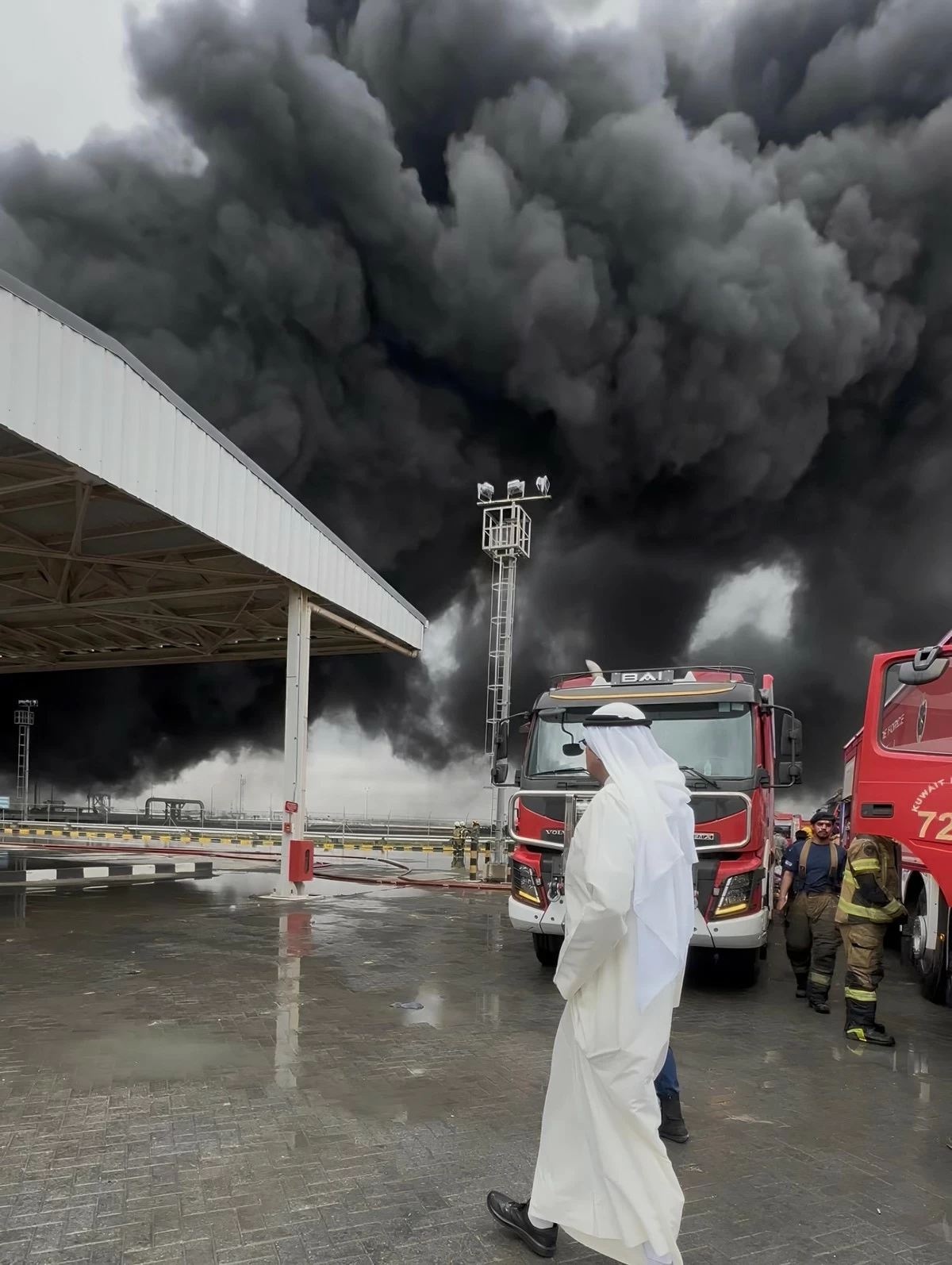 Kuwait Defense Minister inspects Kuwait International Airport during the recent fuel tank fire.