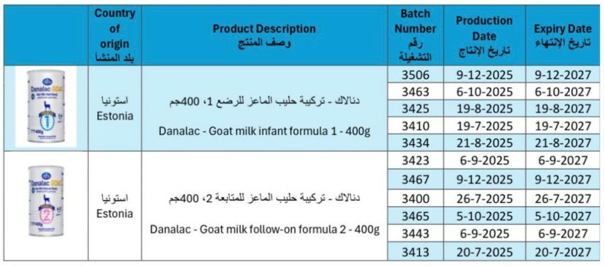 KUWAIT CITY, Apr 26: Kuwait’s Public Authority for Food and Nutrition has announced a precautionary recall of several batches of Danalac goat milk infant formula following safety alerts received through the Rapid Alert System for Food and Feed (RASFF).
