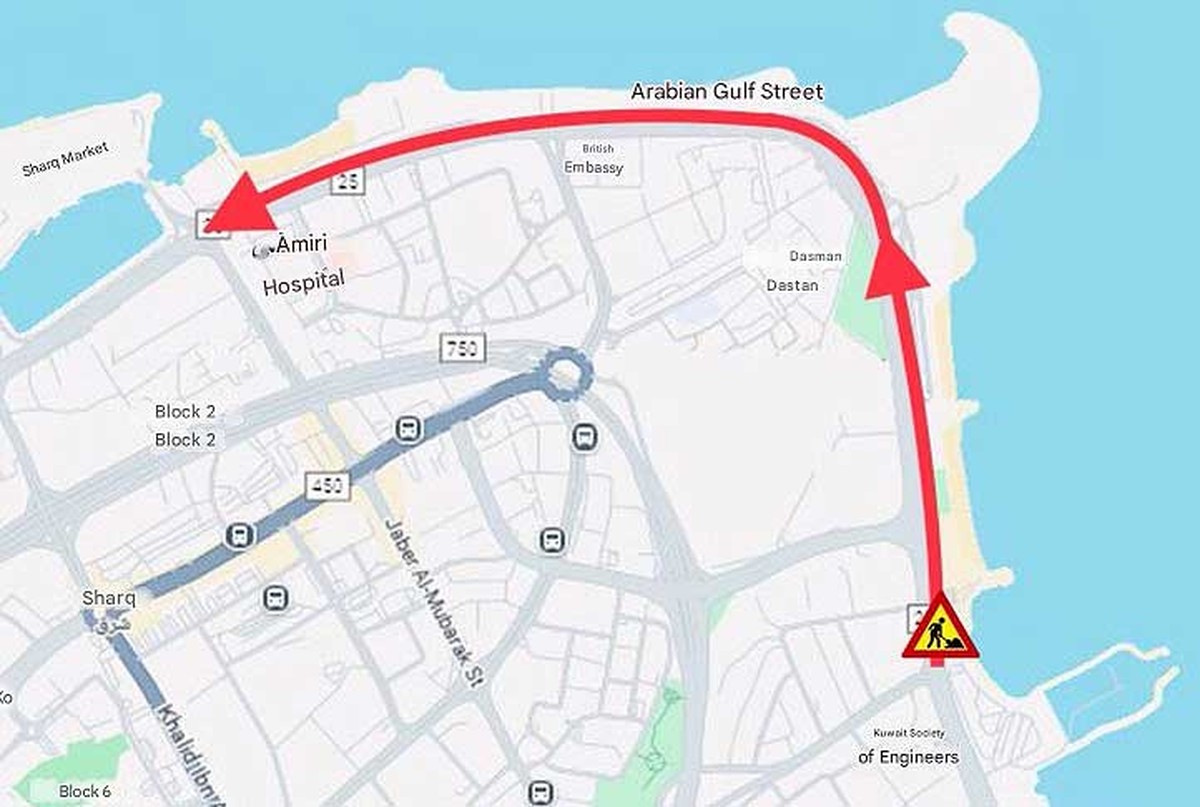KUWAIT CITY, Dec 4: Authorities have announced the complete closure of Arabian Gulf Street, starting from the intersection near the Kuwait Engineers Society and extending to the intersection leading to Amiri Hospital. The closure will take effect from 6:00 PM on Thursday, December 4, 2025, and will remain in place until 6:00 AM on Sunday, December 7, 2025.