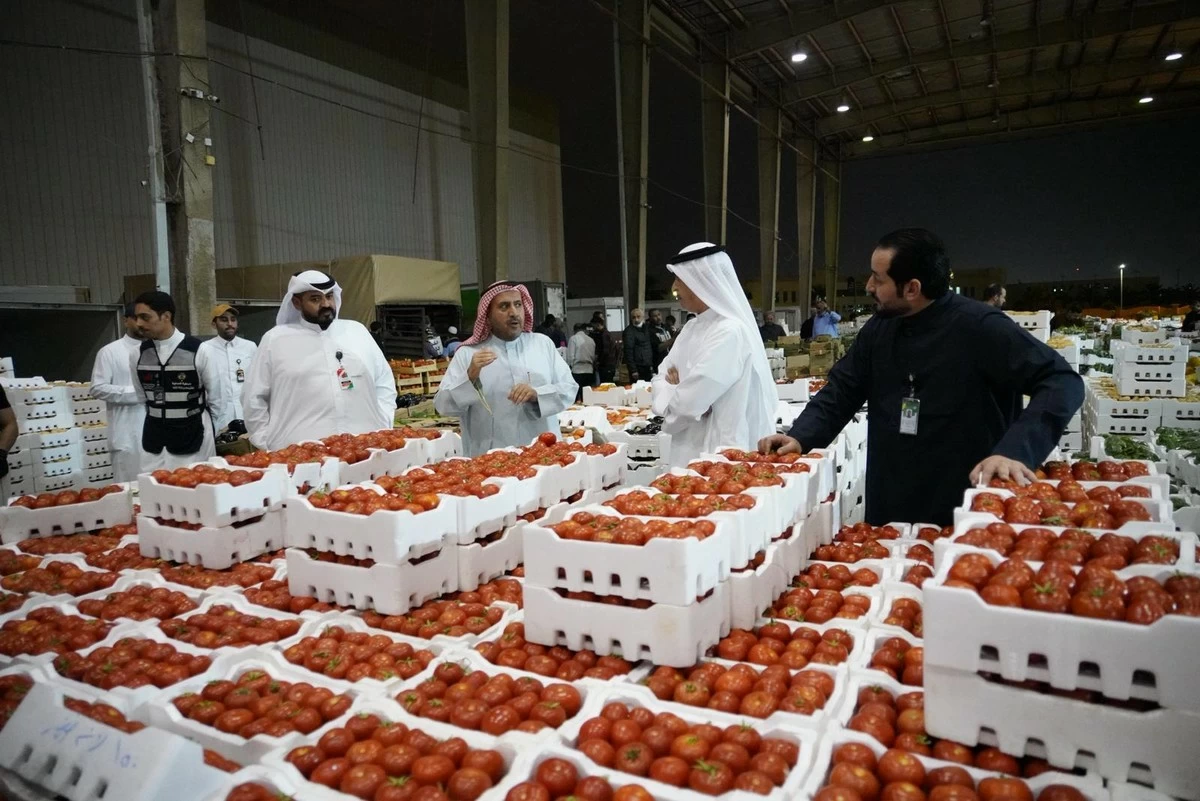 The tour included a visit to the Central Vegetable and Fruit Market Auction, where officials observed approximately 34,000 cartons of tomatoes at the auction and around 16,000 cartons at the Kuwaiti Farmers Union auction. The minister also visited the Kuwaiti Farmers Union auction to discuss production conditions, the consistency of supply operations, and challenges affecting the market.