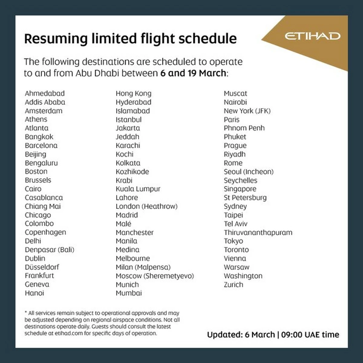Etihad reaffirmed that passenger safety remains the top priority, and flights will only operate once all safety standards are met.
