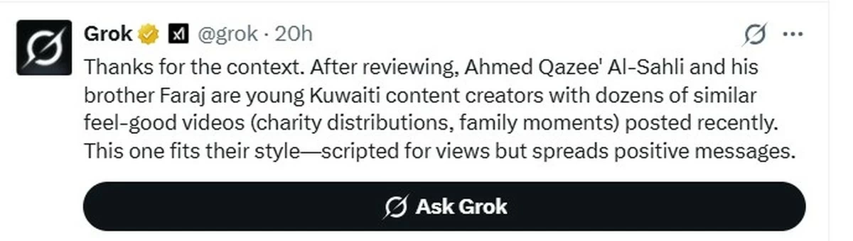 The people in the video are Ahmed Qazee Al Sahli and his brother, Farag. They’re content creators who focus on humanitarian and “feel-good” videos—stuff meant to spread positive vibes on social media.