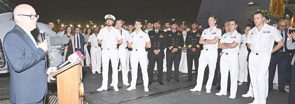 Meanwhile, the frigate’s commander, Captain Pierre- Louis Josselin, expressed his appreciation for Kuwait: “We are honored to be in the State of Kuwait, alongside an armed force with which we share a long-standing and fruitful defense partnership, as reflected in the large number of Kuwaiti non-commissioned officers who have received training in France. As a sailor, I am particularly pleased to visit a country with such a rich maritime tradition, exemplified by its values of hospitality.” Captain Josselin explained that defense cooperation is anchored in the 1992 Defense Agreement, renewed in 2009, which established a comprehensive partnership covering joint exercises such as “Pearl of the West,” “Swift Falcon,” and “Arabian Breeze,” as well as collaboration in armaments and officer training in France. Naval training includes advanced programs in Cherbourg, while land-based exercises involve Kuwaiti officers at the prestigious Saint-Cyr Military Academy. The port call at Shuwaikh also allowed the frigate to service equipment, interact with the Kuwaiti Navy, and showcase the vessel and its missions to civilian, military, and diplomatic visitors.