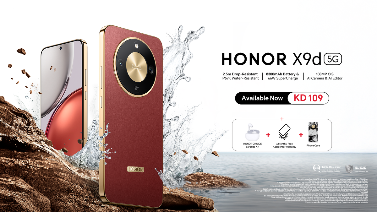 KUWAIT CITY, Oct 29: Global AI device ecosystem company HONOR today announced the official availability of the Unbreakable AI Smartphone HONOR X9d, the latest addition to its acclaimed X Series line-up after huge success during the pre-order phase. HONOR X9d seamlessly integrates industry-leading durability with drop, water and heat resistance, the largest 8300mAh battery in its class, stunning photography capabilities.