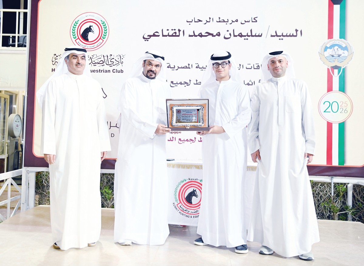 KUWAIT CITY, Dec 2: Khataf Al-Nawader, owned by Mohammed Naif Al-Maimouni and trained by Mohammed Al-Maimouni with jockey Hadi Al-Omar, seized the Al-Rihab Stud Cup, presented by breeder Sulaiman Mohammed Al-Qanai. The Egyptian Arabian horse won the fifth race — a 1,000-meter mixed category event — clocking 1:15.13 minutes during the Hunting and Equestrian Club’s fourth race meeting.