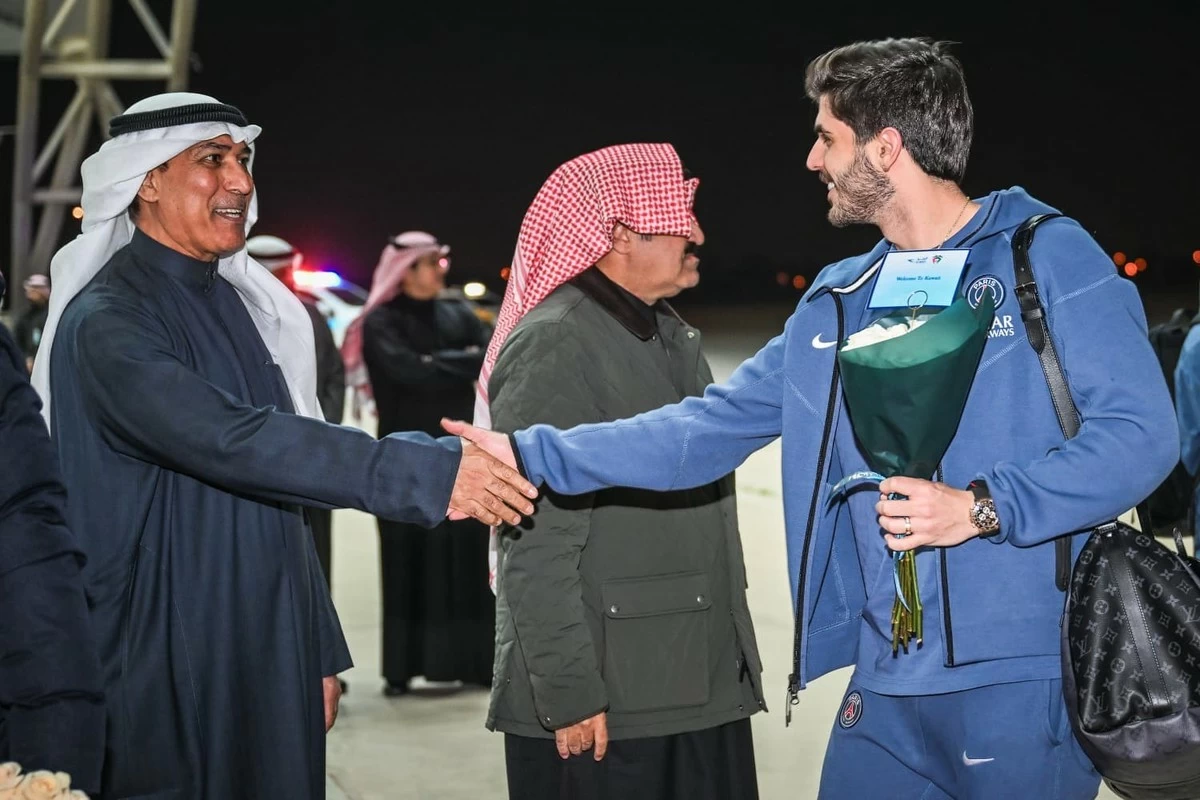 KUWAIT CITY, Jan 7: The delegation from the French football club, Paris Saint-Germain, arrived in the State of Kuwait on Tuesday evening aboard a Kuwait Airways aircraft, as part of preparations to participate in the French Super Cup. Upon arrival, the team was received by Kuwait Airways Chairman, Captain Abdulmohsen Salem Al-Fagaan, and Kuwait Football Association Chairman, Sheikh Ahmad Al-Yousef Al-Sabah, along with several officials.