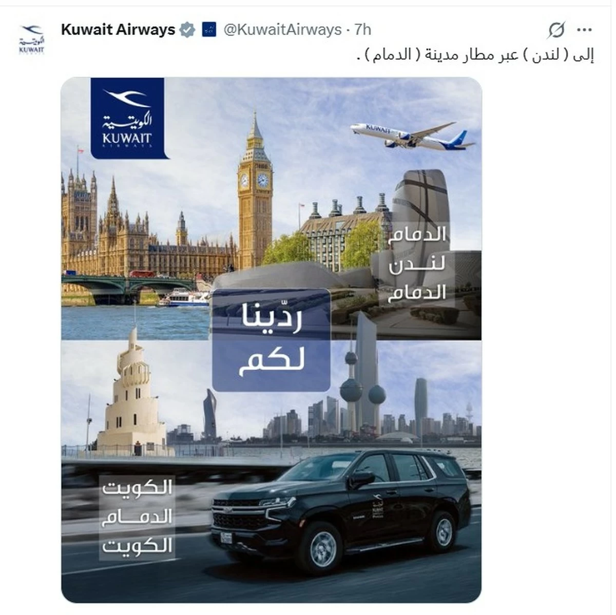 KUWAIT CITY, March 18: Kuwait Airways has indicated that some London-bound flights may operate via Dammam, responding to passenger queries on its official account on X. (https://x.com/KuwaitAirways)