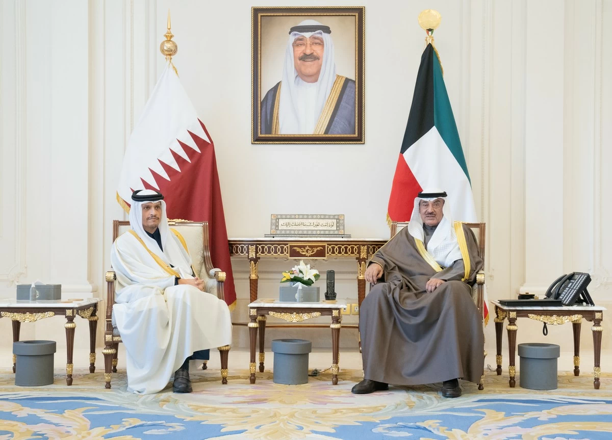 The meeting was attended by Minister of the Amiri Diwan Affairs Sheikh Hamad Jaber Al-Ali Al- Sabah, Minister of Foreign Affairs Sheikh Jarrah Al-Jaber Al-Ahmad Al-Sabah, Chief of His Highness the Crown Prince Office retired General Jamal Al-Theyab, Undersecretary of the Amiri Diwan Sheikh Abdulaziz Mishal Mubarak Abdullah Al-Ahmad Al-Sabah, and Undersecretary of Foreign Affairs at the Amiri Diwan Mazen Al-Issa. Similarly, His Highness the Crown Prince Sabah Khaled Al-Hamad Al- Sabah received on Sunday at Bayan Palace the Qatari Prime Minister and Minister of Foreign Affairs Sheikh Mohammad bin Abdulrahman bin Jassim Al-Thani, along his accompanying delegation, on the occasion of their official visit to the country. During the meeting, Sheikh Mohammad bin Abdulrahman conveyed to His Highness the Crown Prince the greetings and regards of the Amir of Qatar Sheikh Tamim bin Hamad Al- Thani and his Deputy Sheikh Abdullah bin Hamad Al-Thani. In return, His Highness the Crown Prince sent his greetings to Sheikh Tamim bin Hamad Al-Thani and Sheikh Abdullah bin Hamad Al- Thani, wishing them good health and wellness. The meeting was attended by Head of the Crown Prince’s Diwan Sheikh Thamer Jaber Al-Ahmad Al-Sabah, Minister of Foreign Affairs Sheikh Jarrah Jaber Al-Ahmad Al-Sabah, and senior officials.