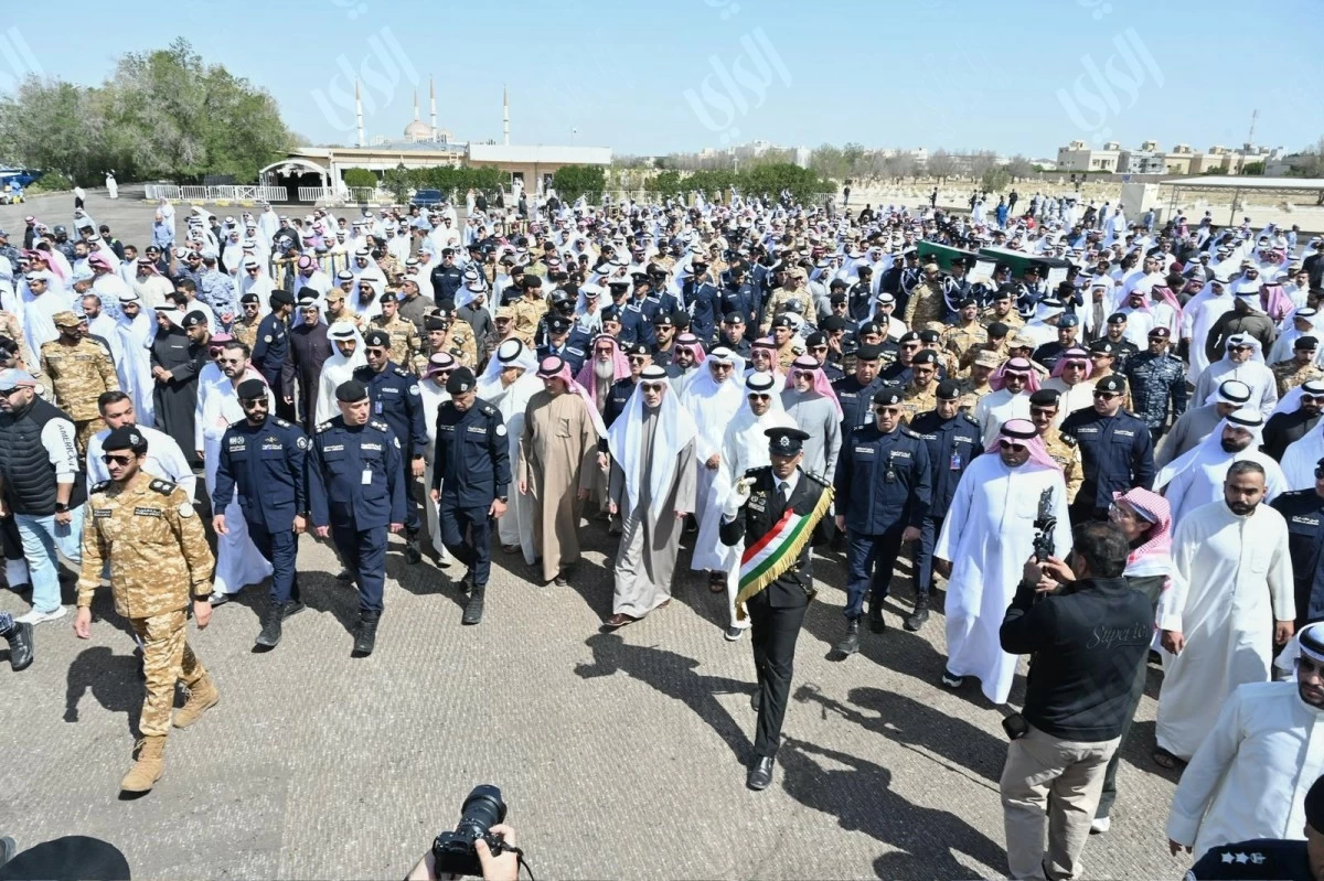 KUWAIT CITY, Mar 9: Kuwait held a solemn funeral procession this morning for two fallen heroes, Lieutenant Colonel Abdullah Emad Al-Sharrah and Major Fahd Abdulaziz Al-Mujammad, from the General Directorate of Land Border Security at the Ministry of Interior.