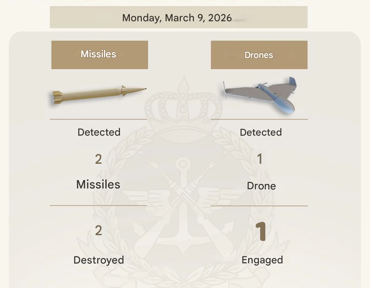 KUWAIT CITY, Mar 9: The Kuwaiti Armed Forces successfully repelled a wave of hostile aerial targets that entered the country’s airspace on Monday, March 9, 2026, according to a statement by Colonel Saud Abdulaziz Al-Otaibi, spokesperson for the Ministry of Defense of Kuwait.