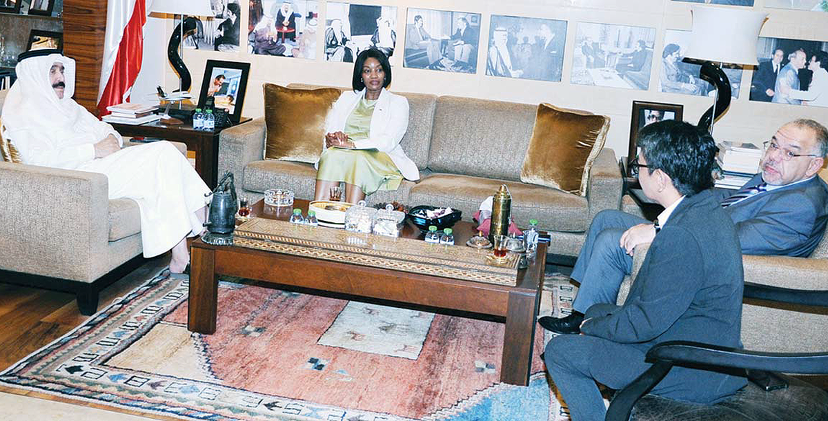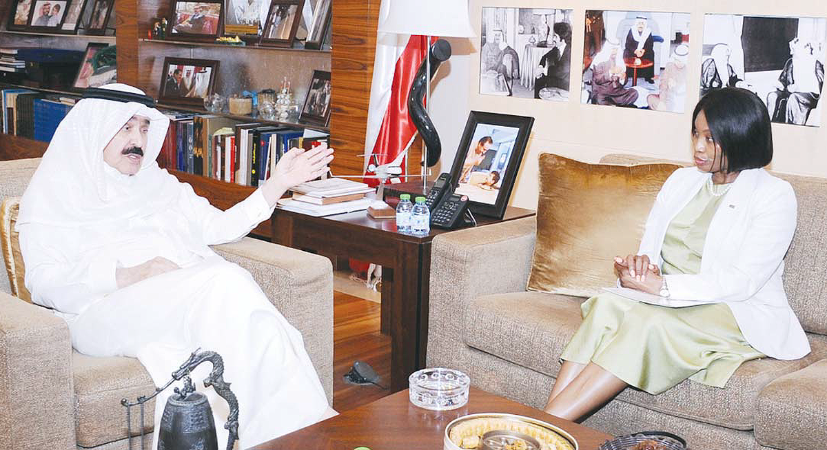 Editor-in-Chief of Al-Seyassah and Arab Times newspapers Ahmed Al-Jarallah in talks with the Acting Ambassador of South Africa to Kuwait Busisiwe Mpungose.