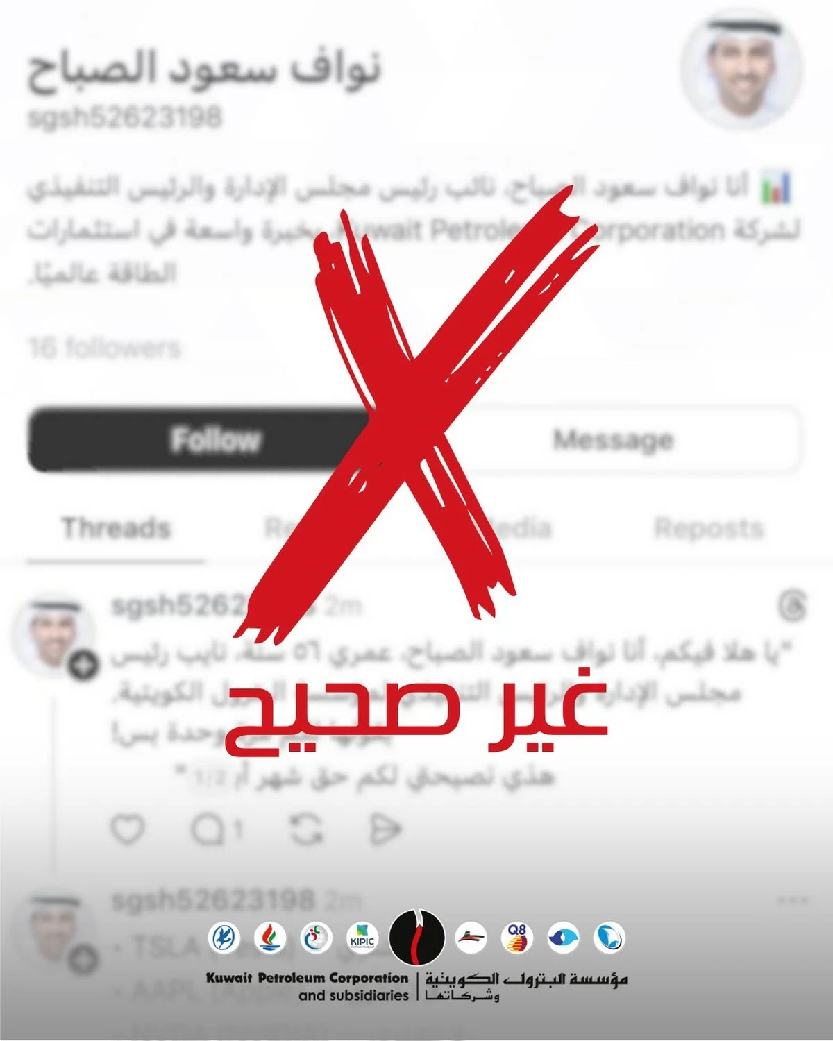 KUWAIT CITY, Apr 12: The Kuwait Petroleum Corporation has warned the public about fake social media accounts impersonating its Chief Executive Officer on various platforms.