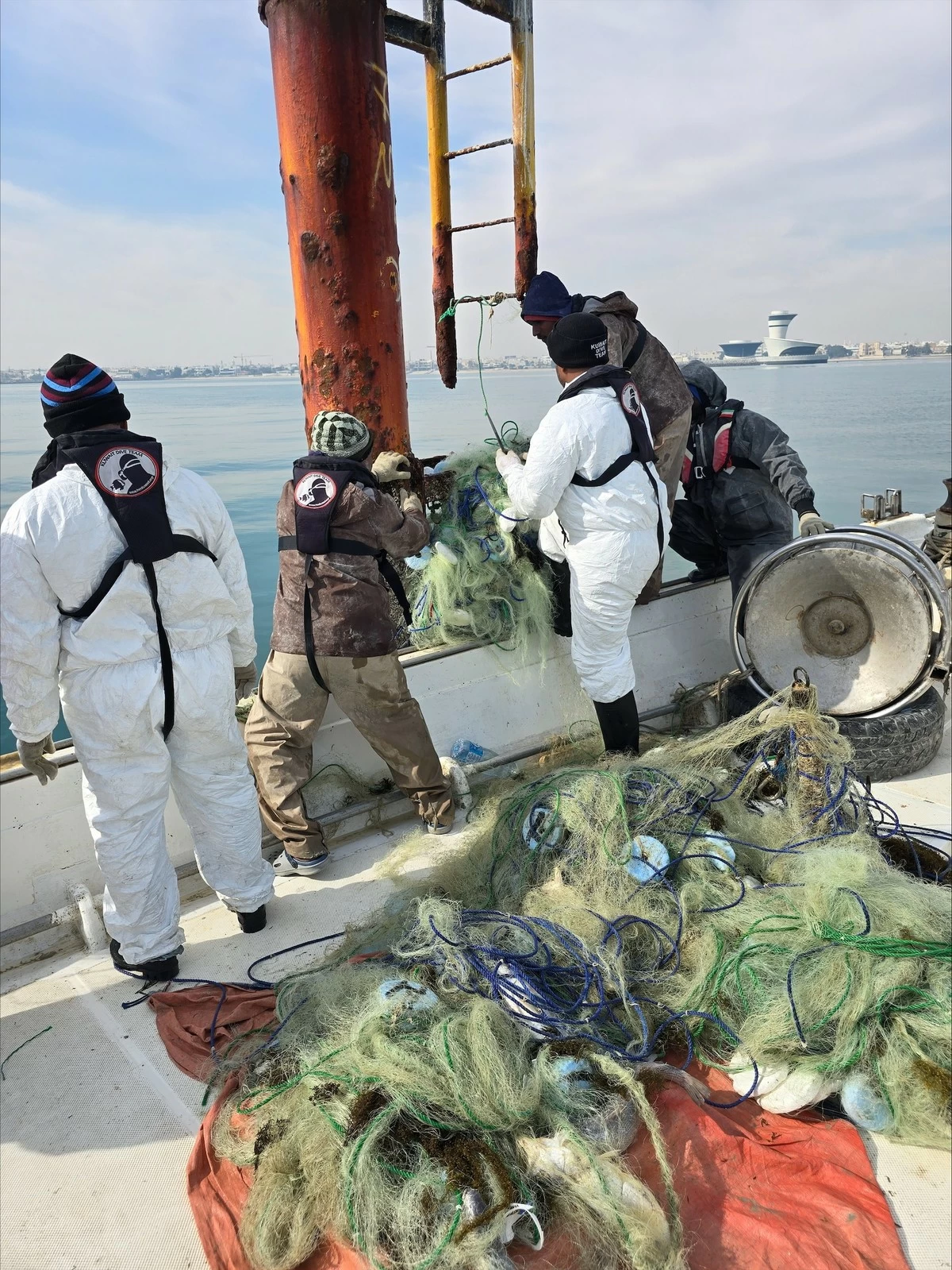 KUWAIT CITY, Feb 1: A Kuwaiti diving team from the Environmental Voluntary Foundation on Sunday successfully removed a ton of abandoned fishing nets from Kuwait Bay and the Fintas coastline, in an effort to protect marine life and ensure safe maritime navigation.