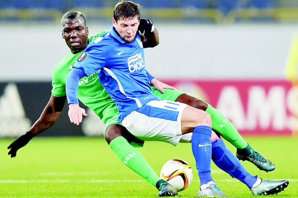 FC Dnipro’s Yehven Seleznyov (right), and AS Saint-Etienne Florentin Pogba vie for ball during the UEFA Europa League Group G football match FC Dnipro vs AS Saint-Etienne at the Dnipro Arena Stadium in Dnipropetrovsk on Oct 22.PARIS, Oct 23, (AFP): Jurgen Klopp’s Anfield bow as Liverpool manager ended in a 1-1 draw against Rubin Kazan in the Europa League on Thursday as fellow British hopefuls Celtic and Tottenham went down to defeat.