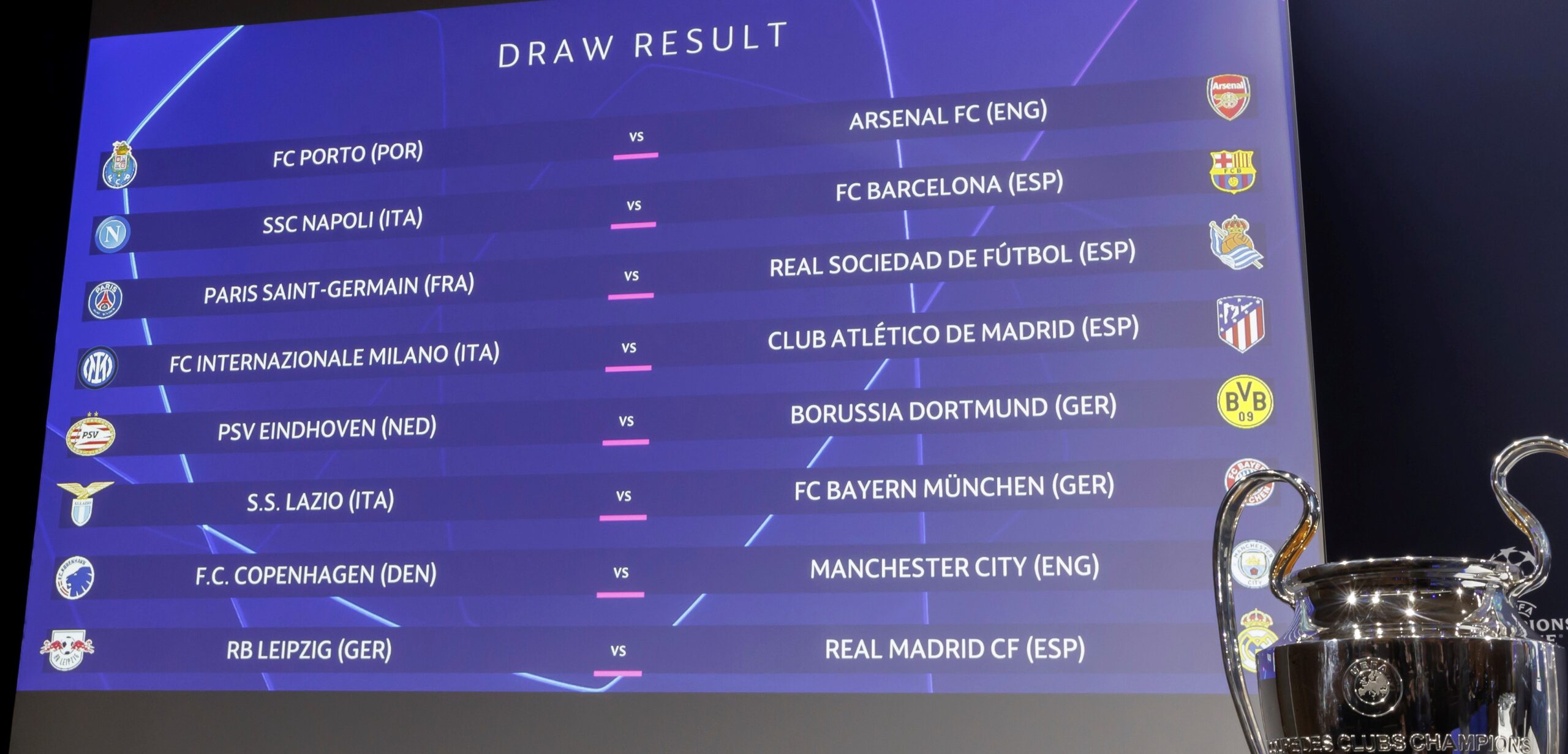 It's also Porto vs. Arsenal, PSV Eindhoven vs. Borussia Dortmund and Lazio vs. Bayern Munich.
