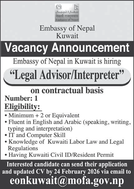 Nepal Embassy in Kuwait Requires Legal Advisor/Interpreter