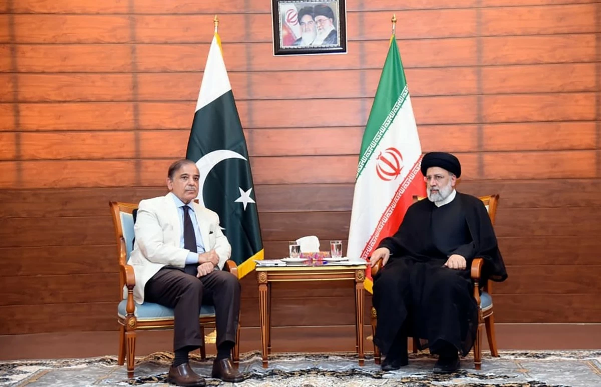 In this photo released by Pakistan Prime Minister Office, Pakistan's Prime Minister Shahbaz Sharif, left, and Iran's President Ebrahim Raisi meet during an inauguration of the Mand-Pishin border in Pishin, border of Pakistan-Iran, on May 18, 2023. (Pakistan Prime Minister Office via AP, File)
