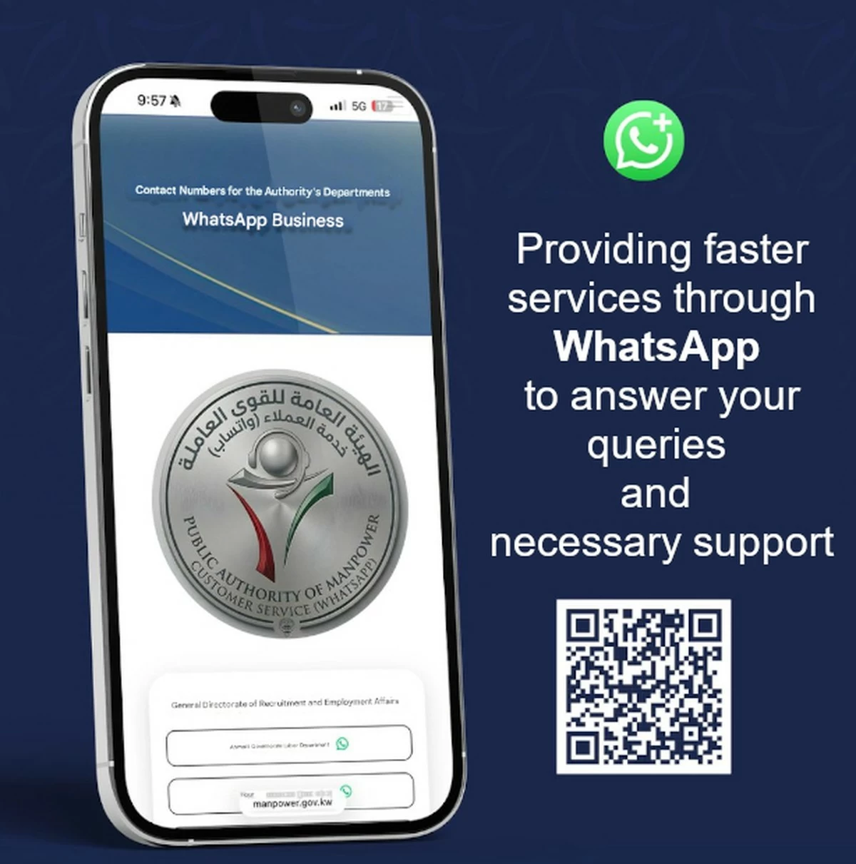 KUWAIT CITY, Apr 6: The Public Authority for Manpower has announced the launch of enhanced communication channels, including WhatsApp services, to provide faster and more accessible support to the public.