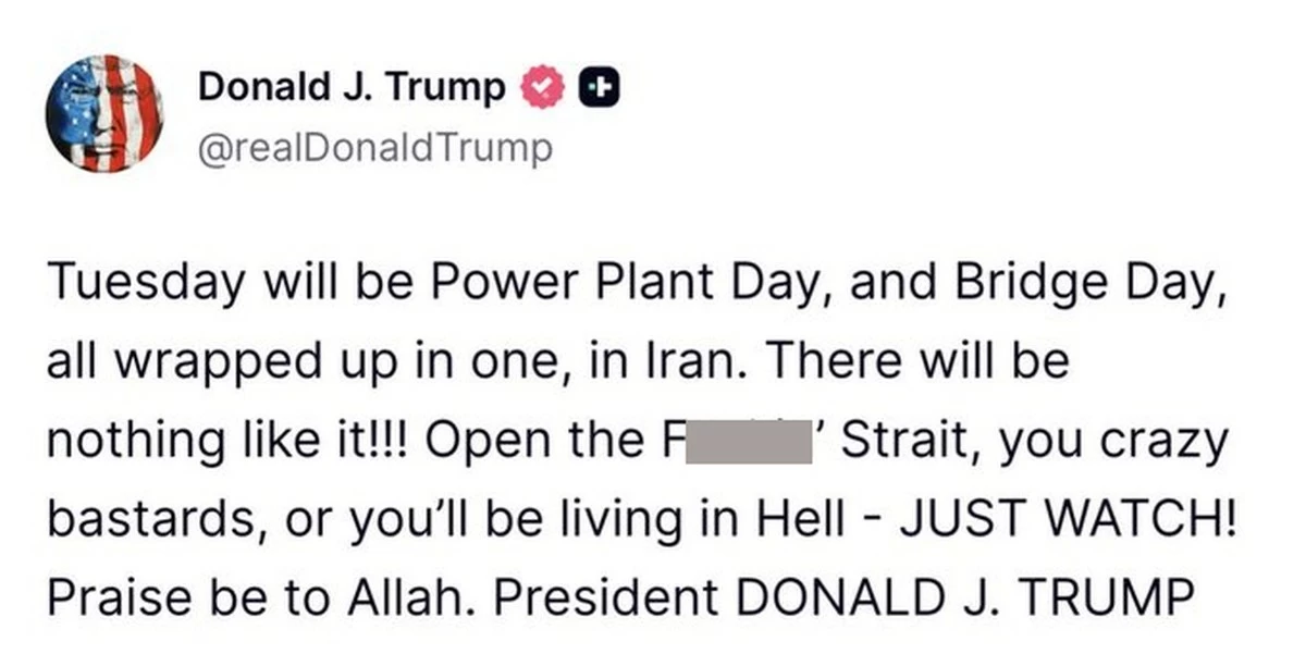He also referred to the day as “Power Plant Day, and Bridge Day” in Iran, while urging authorities to reopen the strategic Strait of Hormuz, a vital global shipping route through which a significant portion of the world’s oil trade passes.