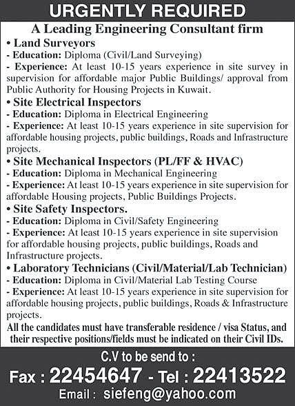 Various Job Vacancies in an Engineering Consultant Firm in Kuwait